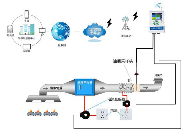 為了更好的積預防餐飲油煙的環境污染,在我國相繼頒布了眾多有關政策法規持續加強餐飲代理商全覆蓋安裝油煙凈化器工作中。在組裝了油煙凈化設備的餐飲企業中,有一些因欠缺管理方法觀念不維護保養使凈化設備無法正常的工作中,還有一些公司雖安裝了凈化器卻不打開,立即將油煙排出到管路中。因為餐飲企業總數極大,只靠人力資源監管沒法完成全方位監督,為提升整頓幅度完成規范化管理,全國各地有關管理方法單位相繼推動餐飲油煙線上監管數據平臺,進行餐飲業油煙檢測和處理工作中。 餐飲油煙在線線監測服務平臺根據聯接每一個餐飲企業的油煙在線監測系統,完成對餐飲企業的凈化情況、凈化狀況的即時線上監管,節約了財力物力,提升了監管高效率。 油煙在線監測系統:由油煙在線檢測儀、數據傳輸技術性和電腦監控軟件云服務平臺構成,它可對油煙濃度、細顆粒物濃度、非甲烷總烴濃度,及其離心風機、凈化器的運作情況開展實時監測,集油煙檢測、數據收集、傳輸數據等功能模塊為一體,根據4G/GPRS通訊方式將信息上傳入監控管理平臺,完成監管工作人員和餐飲企業管理方法的遠程控制查詢。 油煙在線監測儀為油煙在線采集儀的升級版本,由采集主體、顯示屏、油煙探頭三部分組成。采集器通過控制探頭采集油煙原始數據,對數據進行讀取并進行綜合計算,較終得到油煙濃度值,用戶可通過平臺數值等信息進行查看,也可在顯示屏上直接查看數據,也可擴展工況在線監測,監控凈化器和風機的工作狀態。 短信報警、郵件報警等服務。
